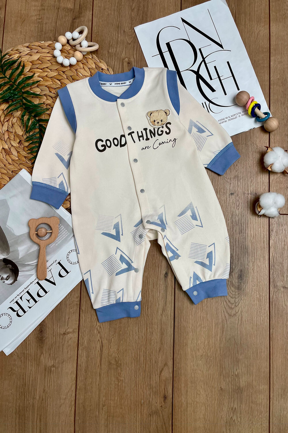 Комбинезон М 73,80,90(6-12мес) надпись "GOOD THINGS"/мишка/кнопки