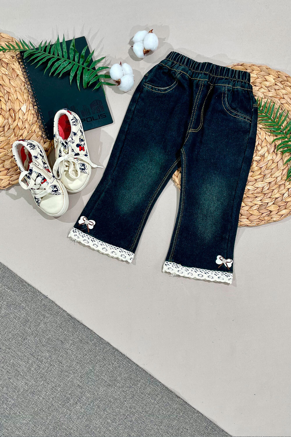Джинсы Д 90,100,110,120,130(2-5лет) клёш/апликация бантик/строчка
