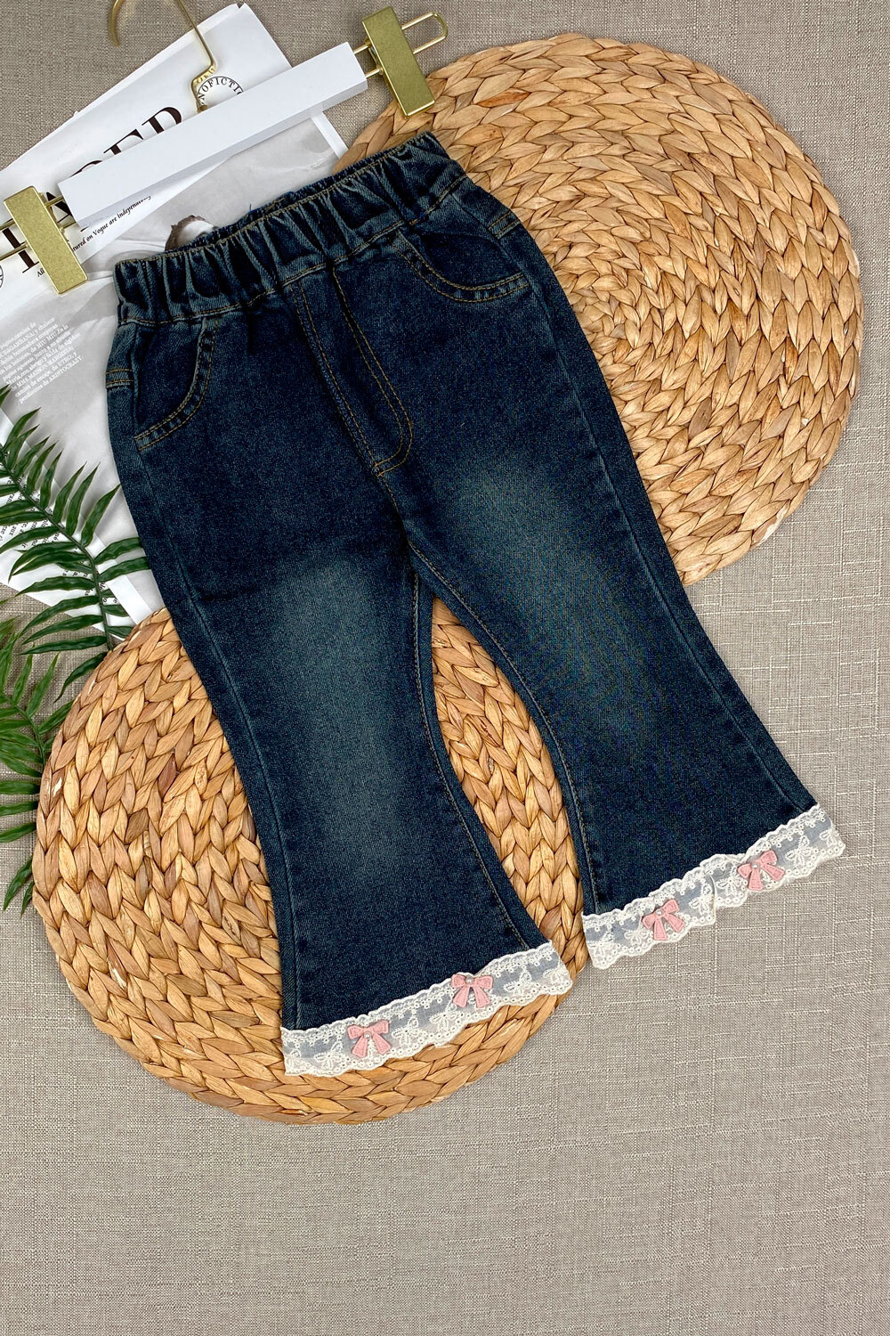 Джинсы Д 90,100,110,120,130(2-5лет) на резинке/клеш/строчка/аппликаиция бантик с бисером