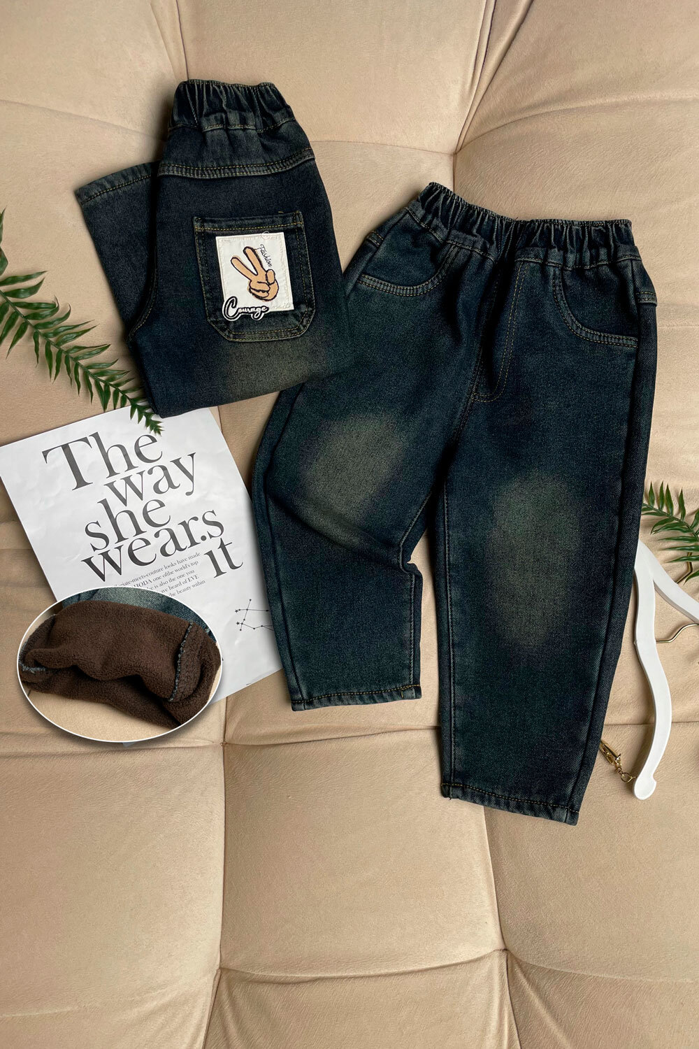 Джинсы М 90,100,110,120,130(2-6лет) МЕХ/нашивка "2 пальца/courage"/задние карманы