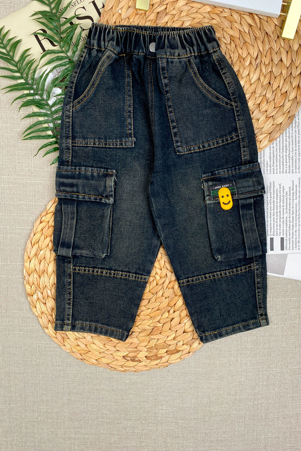 Джинсы М 90,100,110,120,130(2-5лет) однотон/нашивка "Super Happy"/брелок в виде смайлика