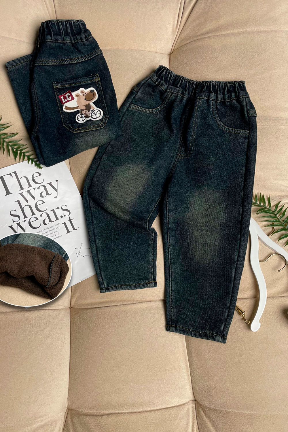 Джинсы М 90,100,110,120,130(2-6лет) МЕХ/нашивка "мишка на велосипеде/LC"/задние карманы