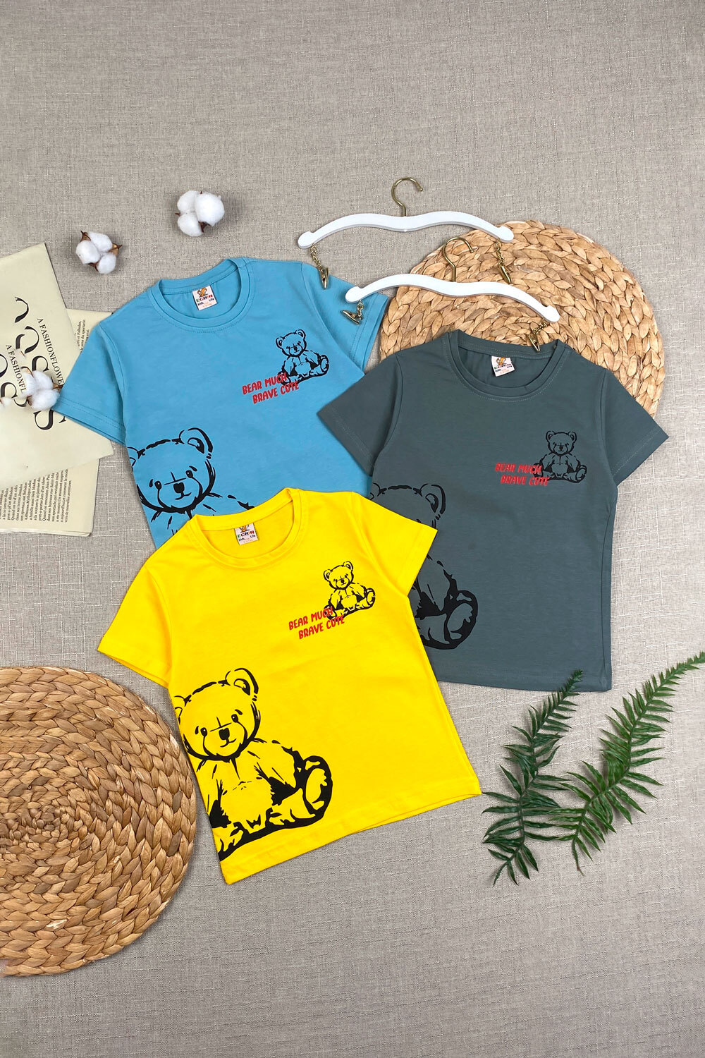 Футболка М 104,110,116,122 РАЗМЕРЫ ПОВТОРЯЮТСЯ/однотон/принт мишка/надпись