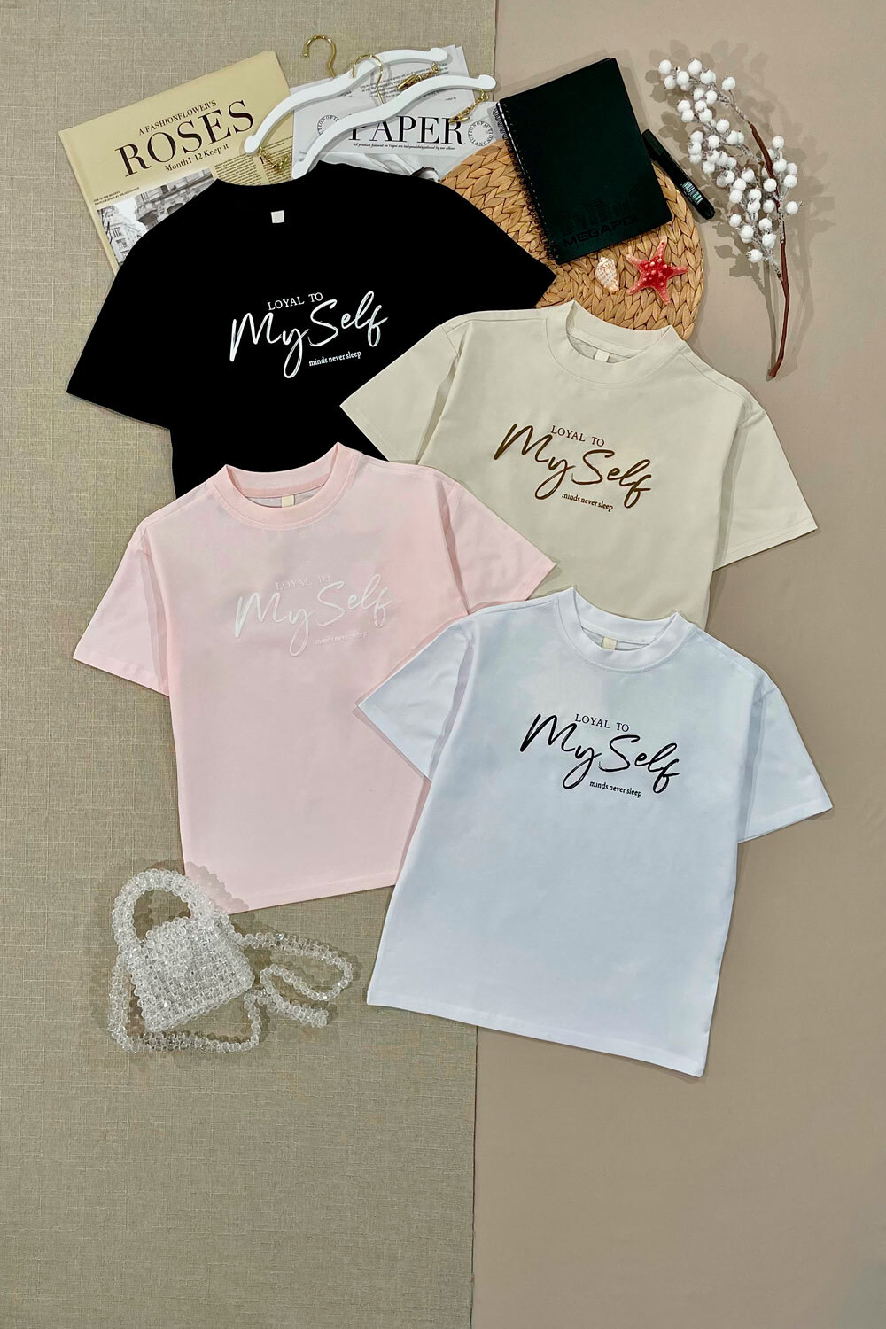 Футболка Д 130,135,140,150(8-12лет) однотонная/оверсайз/надпись/"MY SELF"