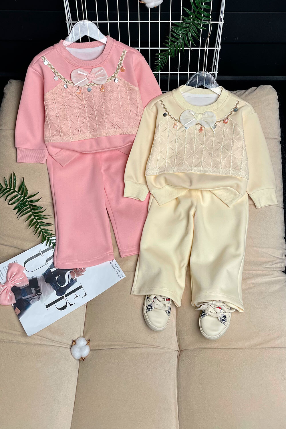Костюм Д 80,90,100,110,120(1-5лет) свитшот+брюки/карманы/узор-ромбик/бант