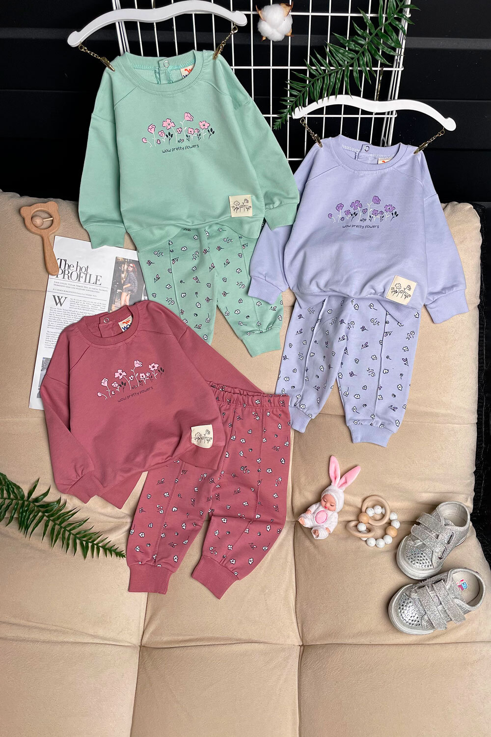 Костюм Д 74,80,86,92 свитшот+брюки/принт цветы/"wow pretty flowers"