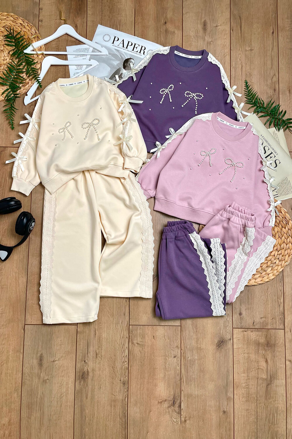 Костюм Д 110,120,130,140,150(3-7лет) свитшот+брюки/однотон/бантики из бисера