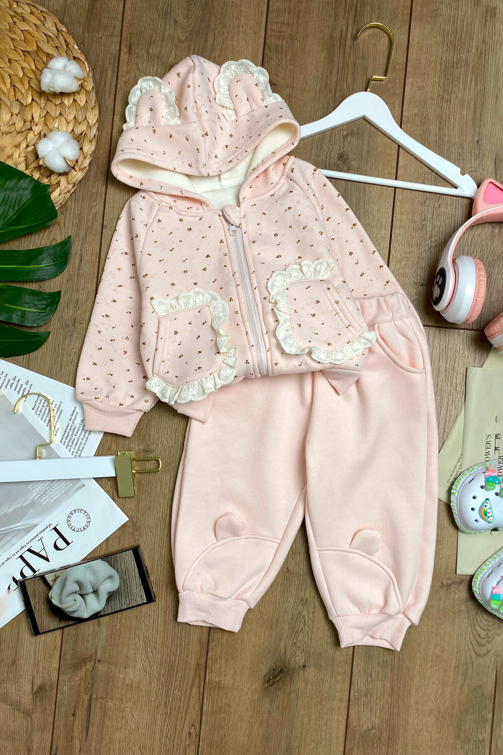 Костюм Д 90,100,110,120,130(1-4года) зип-худи+брюки МЕХ/однотон/манжеты/ушки