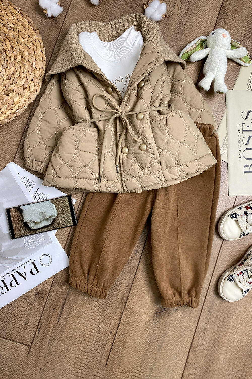 Костюм Д 80,90,100,110,120(1-4года) /кофта+лонгслив+брюки/МЕХ/вязанный воротик/пуговицы