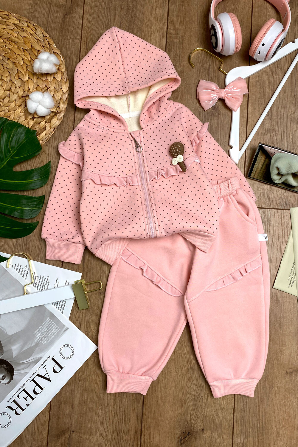 Костюм Д 90,100,110,120,130(1-4года) зип-худи+брюки/МЕХ/манжеты/принт горошек/аппликация улитка