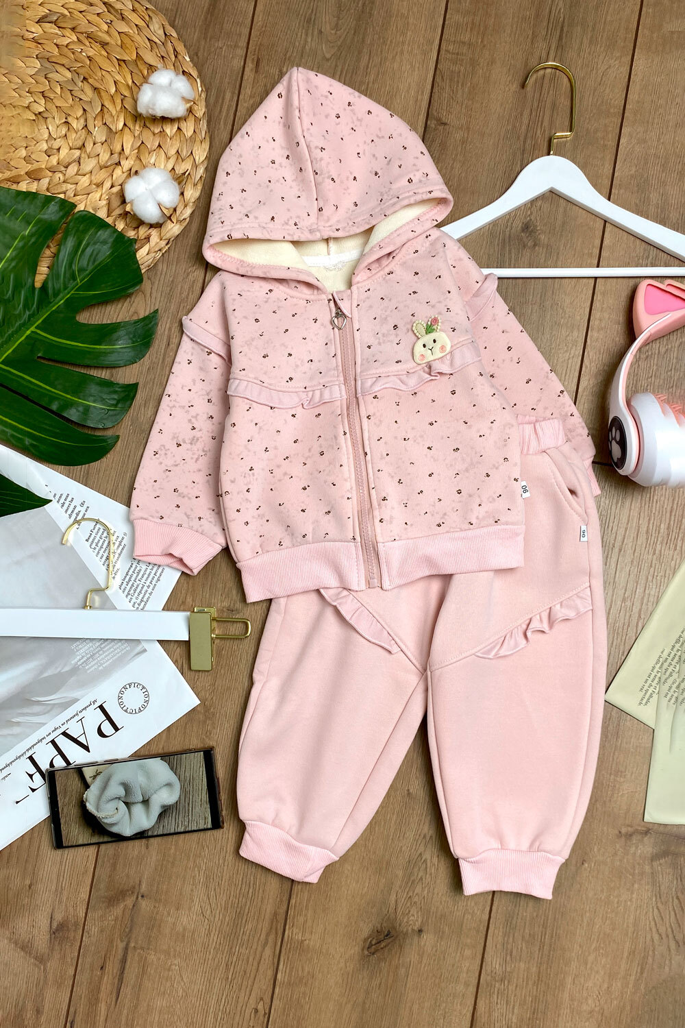 Костюм Д 90,100,110,120,130(1-4года) зип-худи+брюки МЕХ/однотон/манжеты/аппликация зайчик