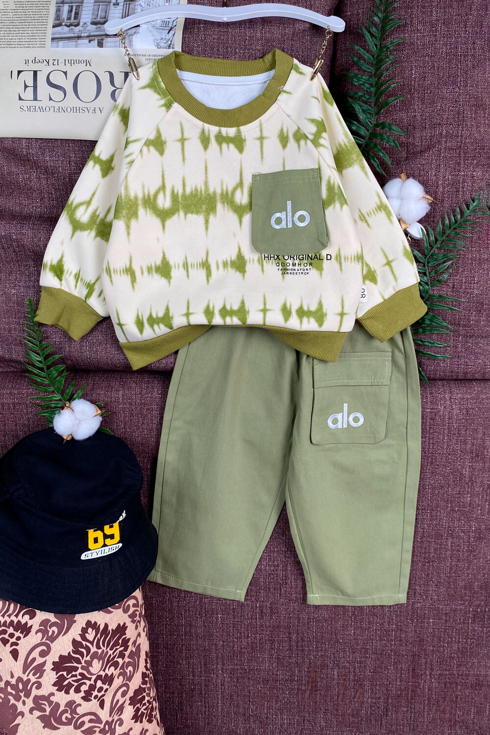 Костюм М 80,90,100,110,120(1-5лет) свитшот+брюки/карман с нашивкой "alo"
