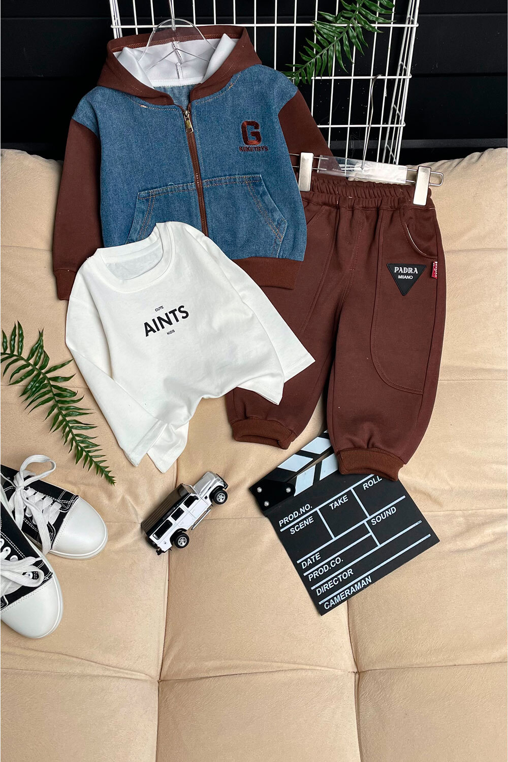 Костюм М 80,90,100,110,120(1-5лет) фуфайка+лонгслив+брюки/капюшон/надпись "G"/частично джинса