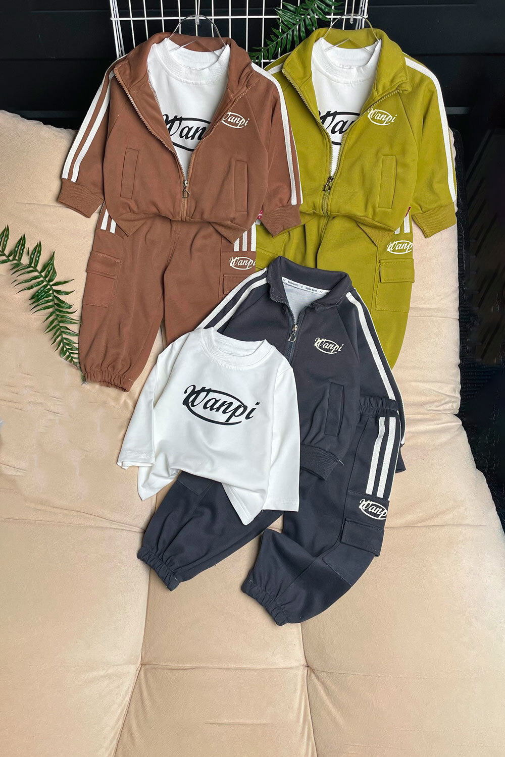 Костюм М 80,90,100,110,120(1-5лет) фуфайка+лонгслив+брюки/надпись "Wanpi"/карманы