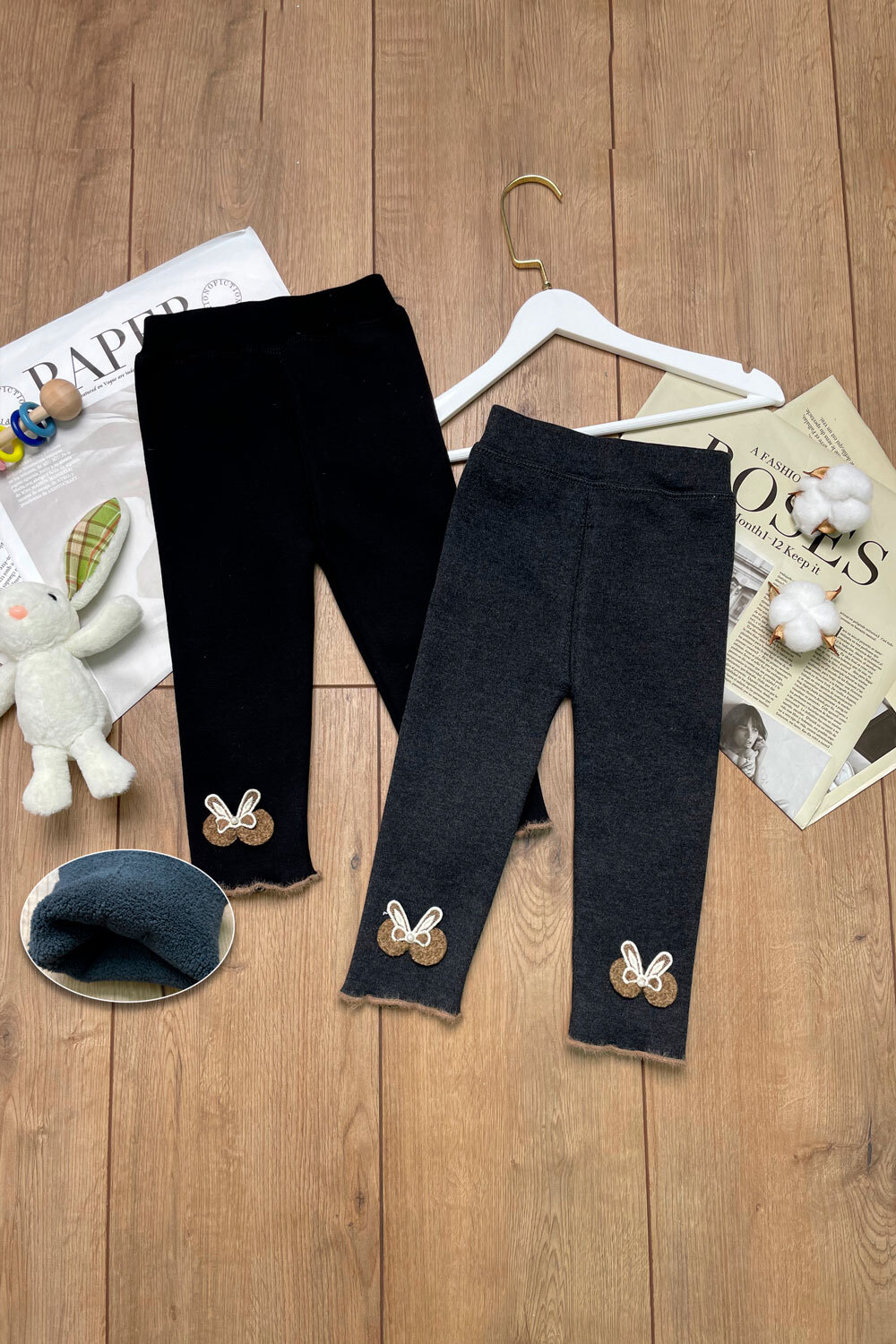 Леггинсы 80,90,100,110,120(1-4года) МЕХ/нашивка "бантик,заячьи ушки"/волнистый низ