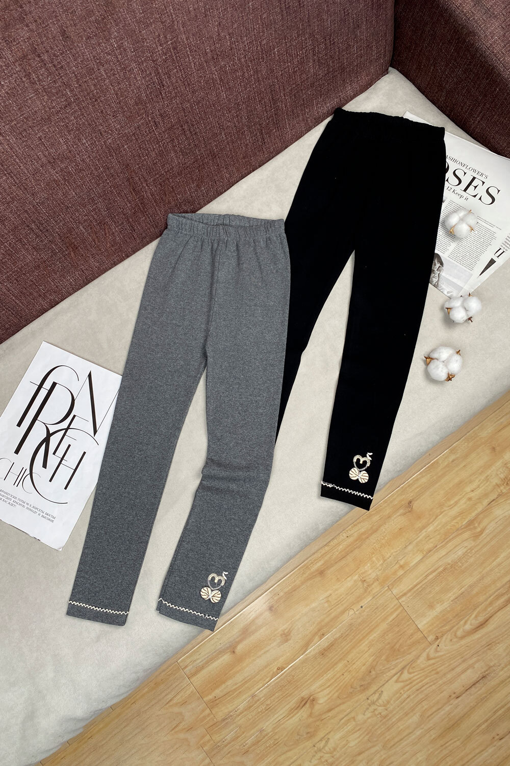 Леггинсы 110,120,130,140,150(9-12лет) нашивка "сердечко/бантик в полоску"/декорированный низ