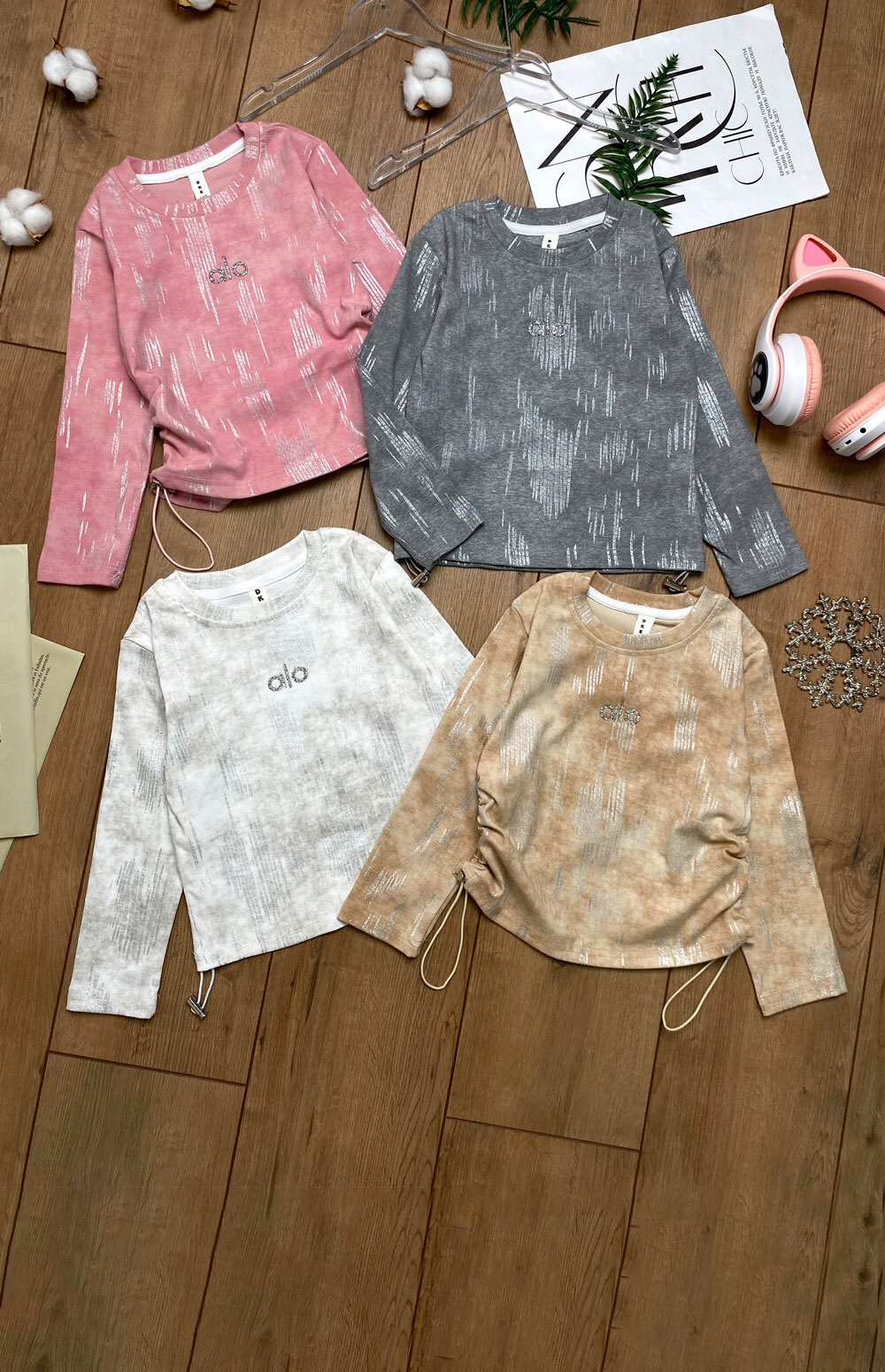 Лонгслив Д 110,120,130,140,150(5-9лет) принт полоски/надпись из страз "ALO"
