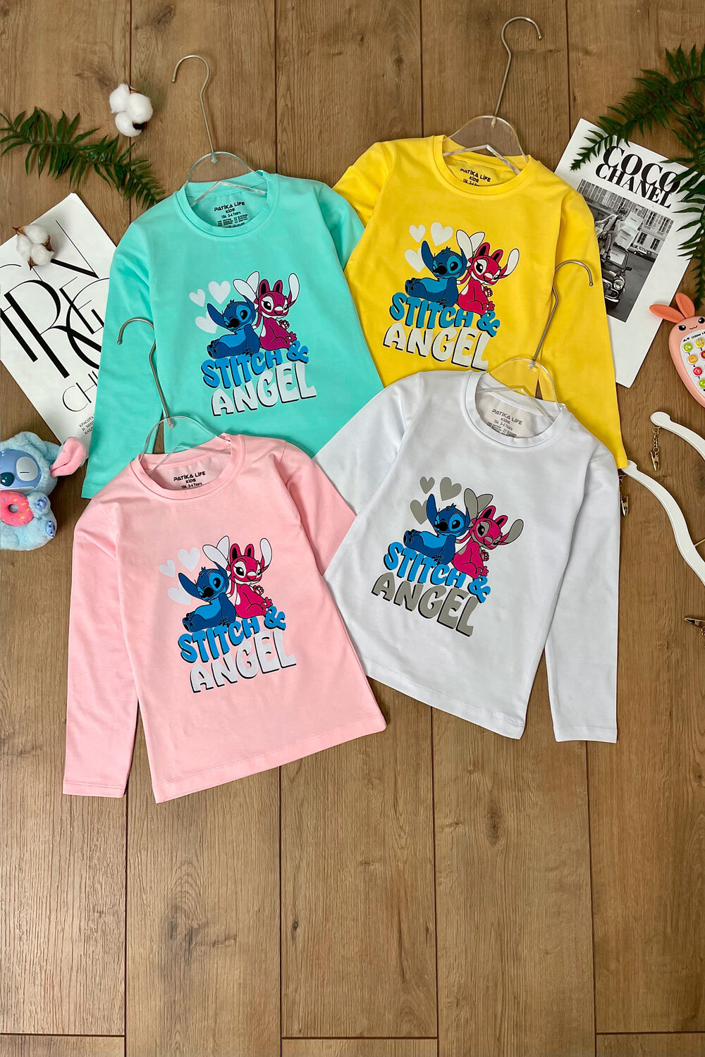 Лонгслив Д 104,110,116,122,128 /однотон/принт"Стич с сердцем"/надпись 'Stich"