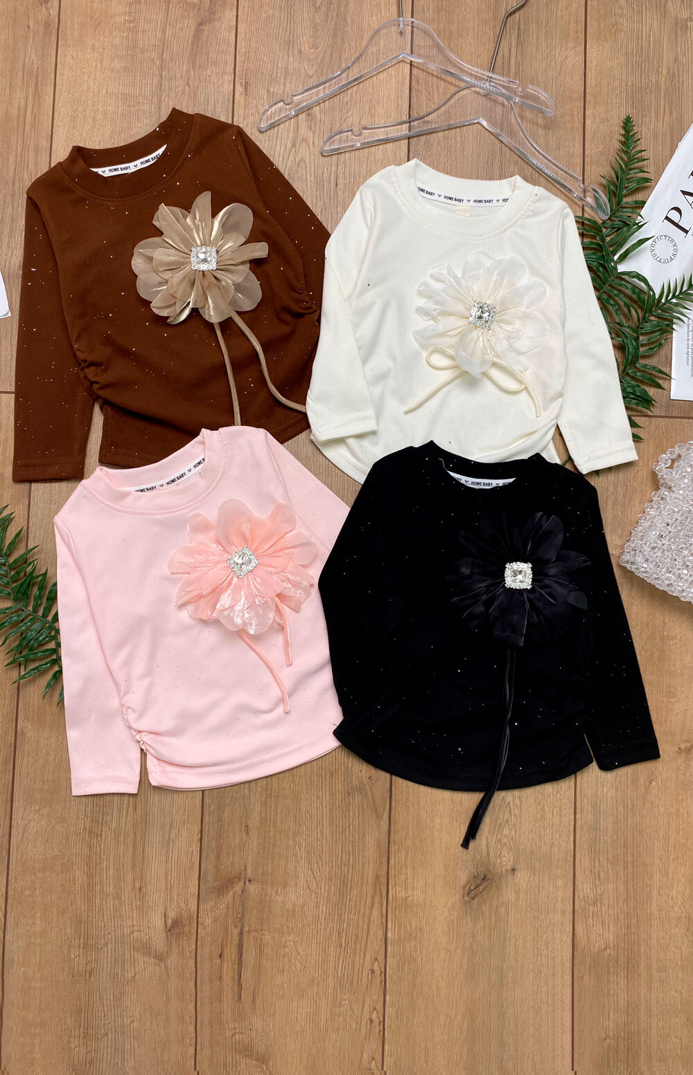 Лонгслив Д 90,100,110,120,130(2-5лет) резинки-завязки по бокам/глитер-блестки/апликация цветок