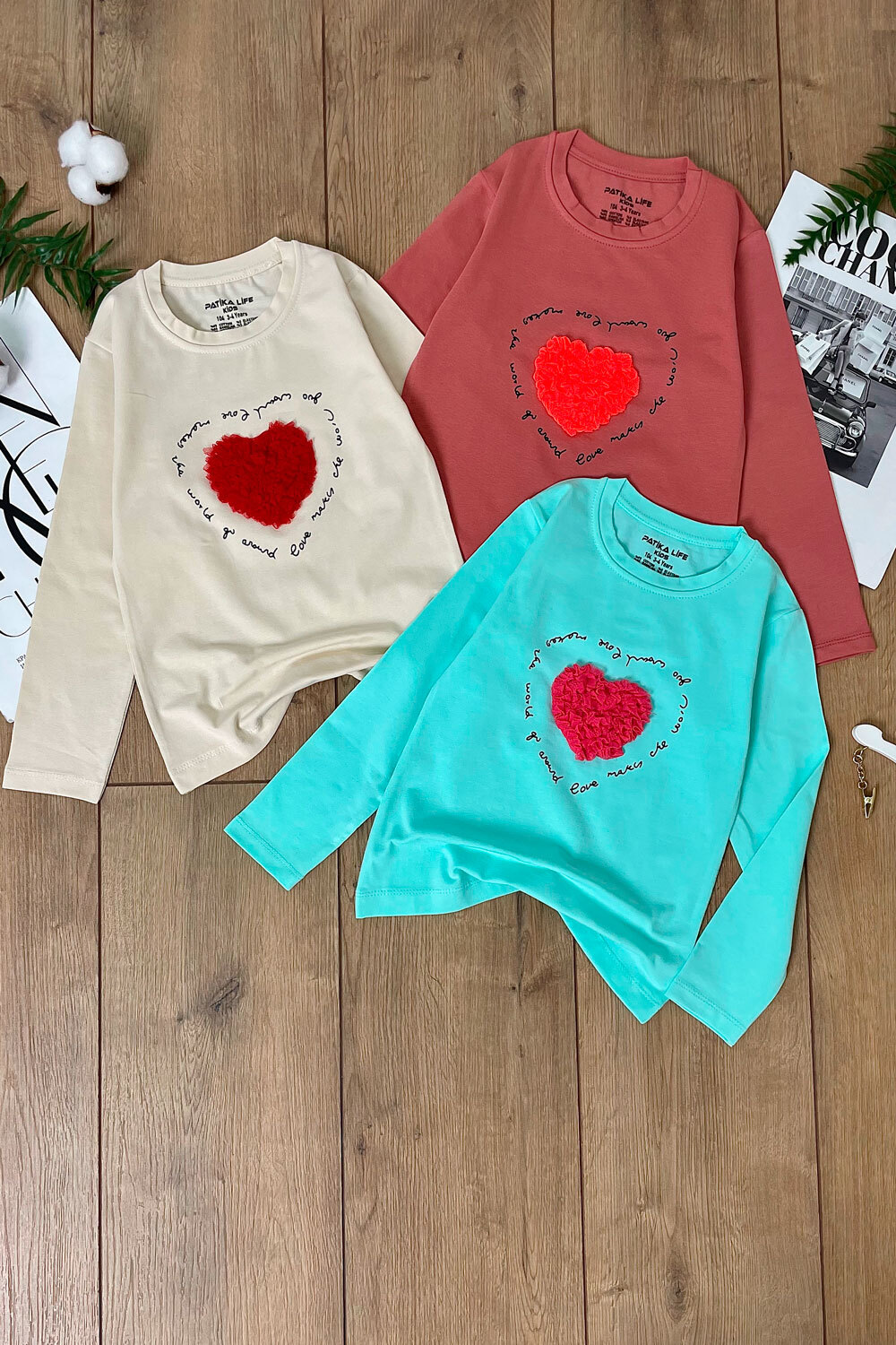 Лонгслив Д 104,110,116,122,128 /однотон/аппликация"Сердце"/надпись 'the world go around love make'