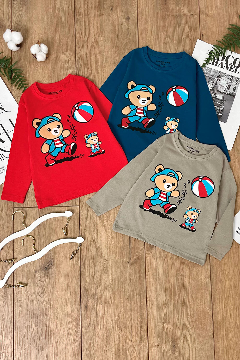 Лонгслив М 86,92,98,104 принт "мишка-футболист"/кепка/мяч/костюм