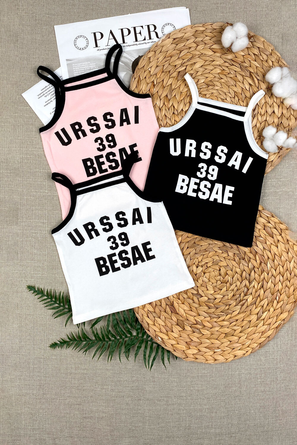 Майка Д 90,100,110,120,130(1-5лет) тонкие бретельки/надпись "URSSAI 39 BESAE"
