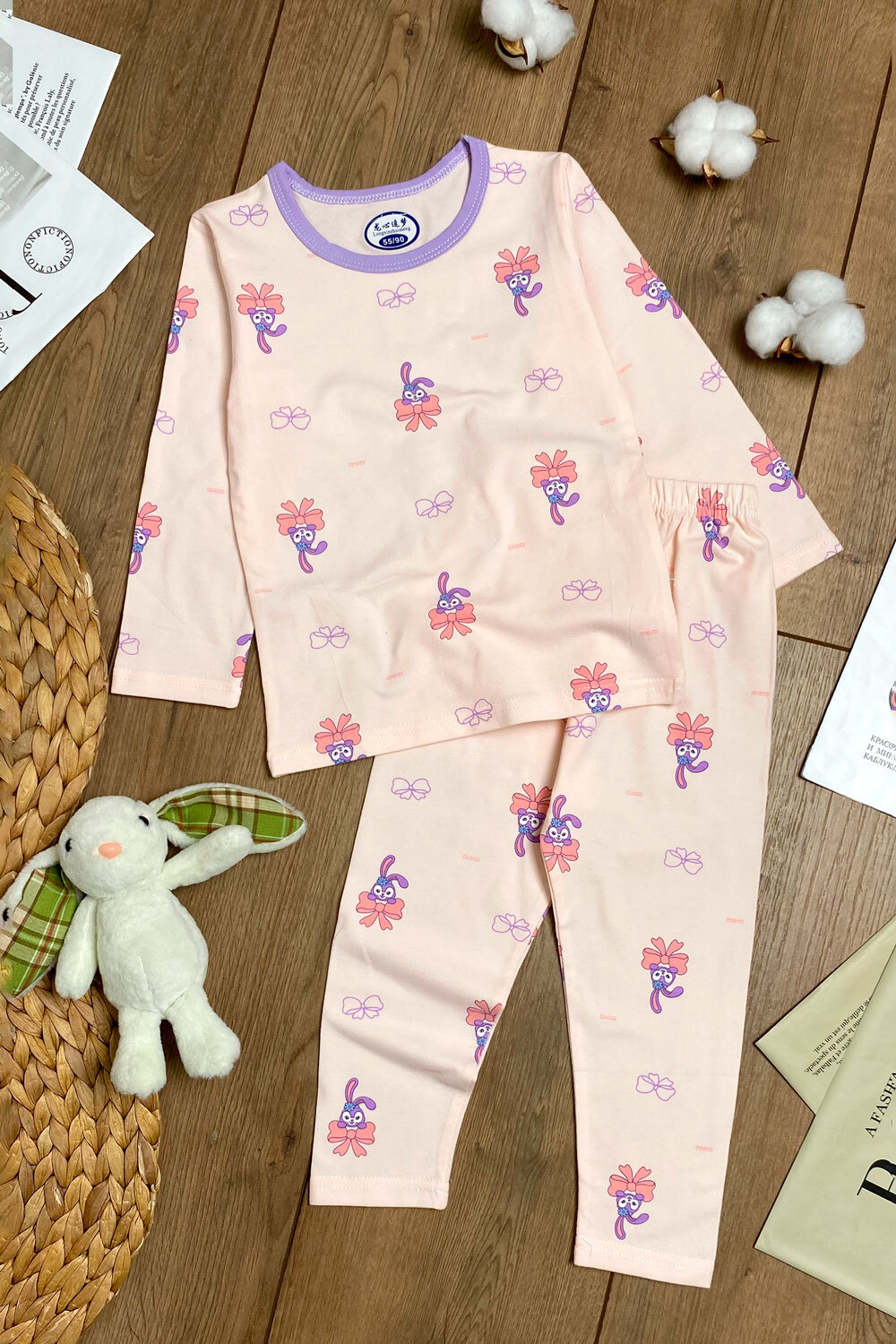 Пижама Д 90,100,110(1-3года) лонгслив+брюки/зайки с бантиками