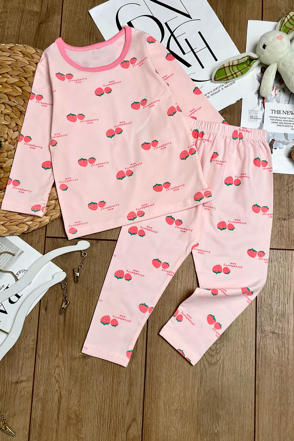 Пижама Д 90,100,110(1-3года) лонгслив+брюки/узор клубника