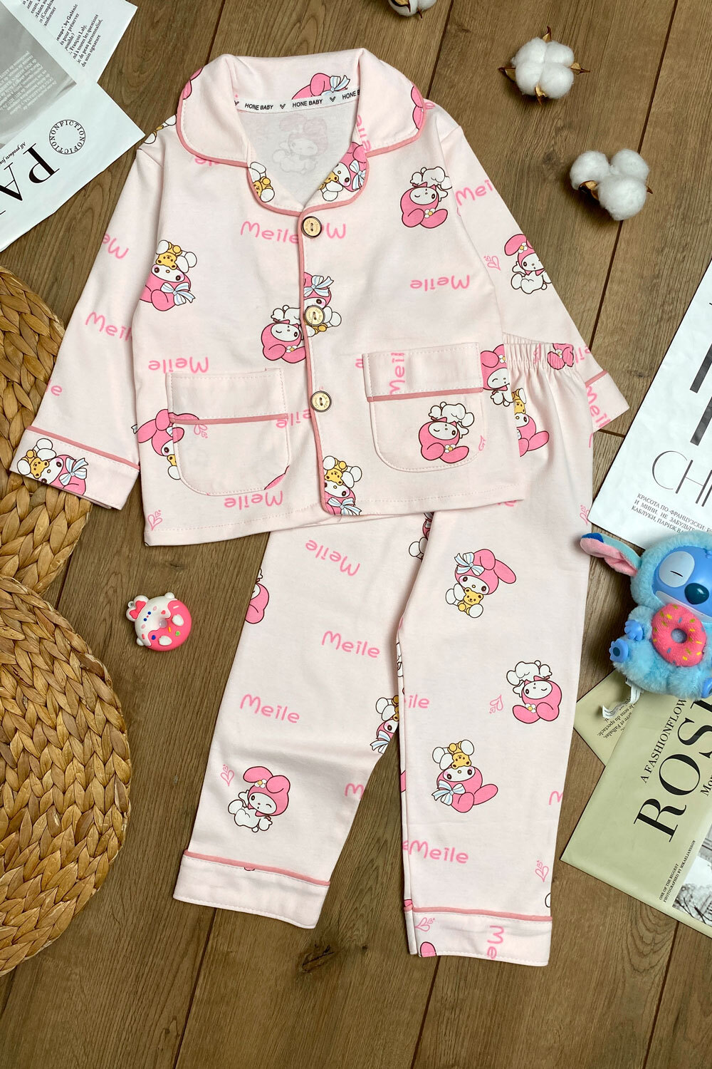 Пижама Д 130,140,150,160(4-7лет) рубашка+брюки/девочка-кролик/"meile"