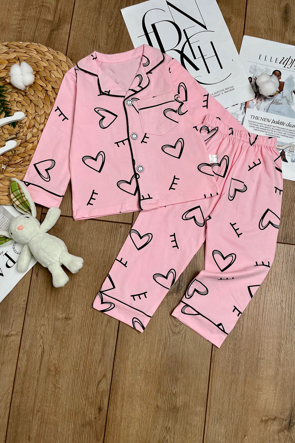 Пижама Д 90,100,110(1-2года) рубашка+брюки/узор сердца "TTT"