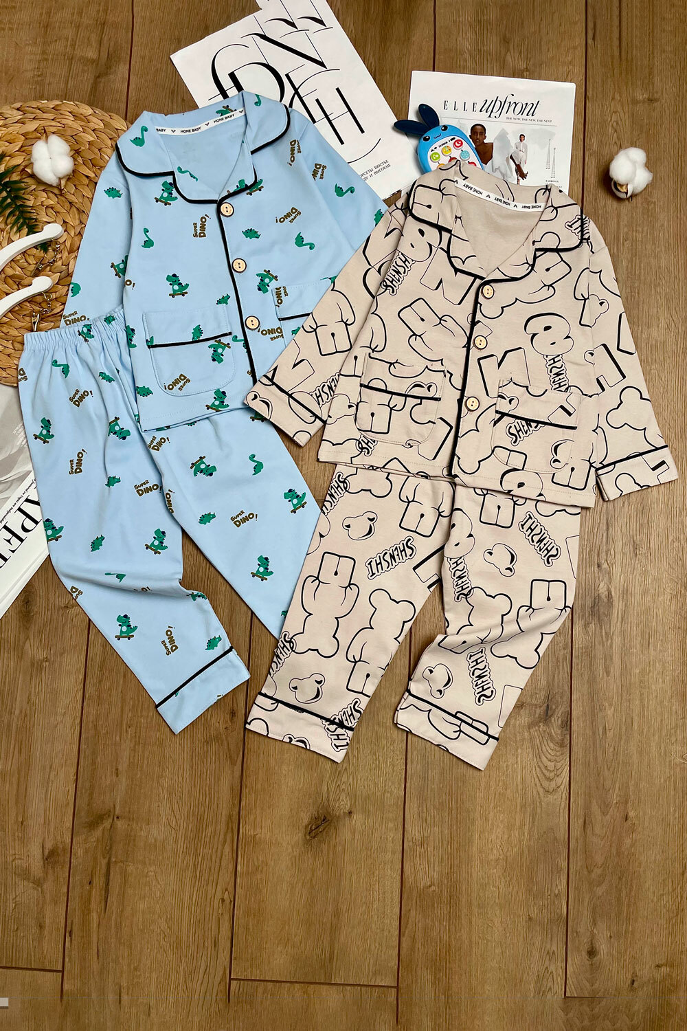 Пижама М 90,100,110,120(1-3года) рубашка+брюки/динозавр и мишка