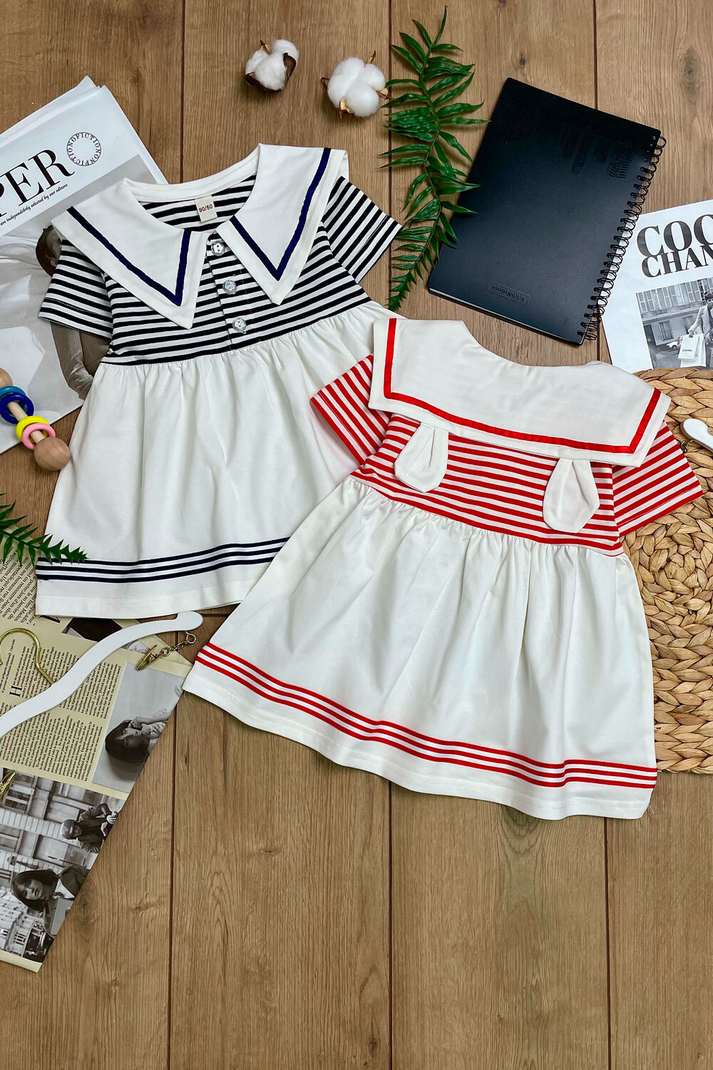 Платье 90,100,110,120,130(1-5лет) отложной воротник/узор в полоску/ушки