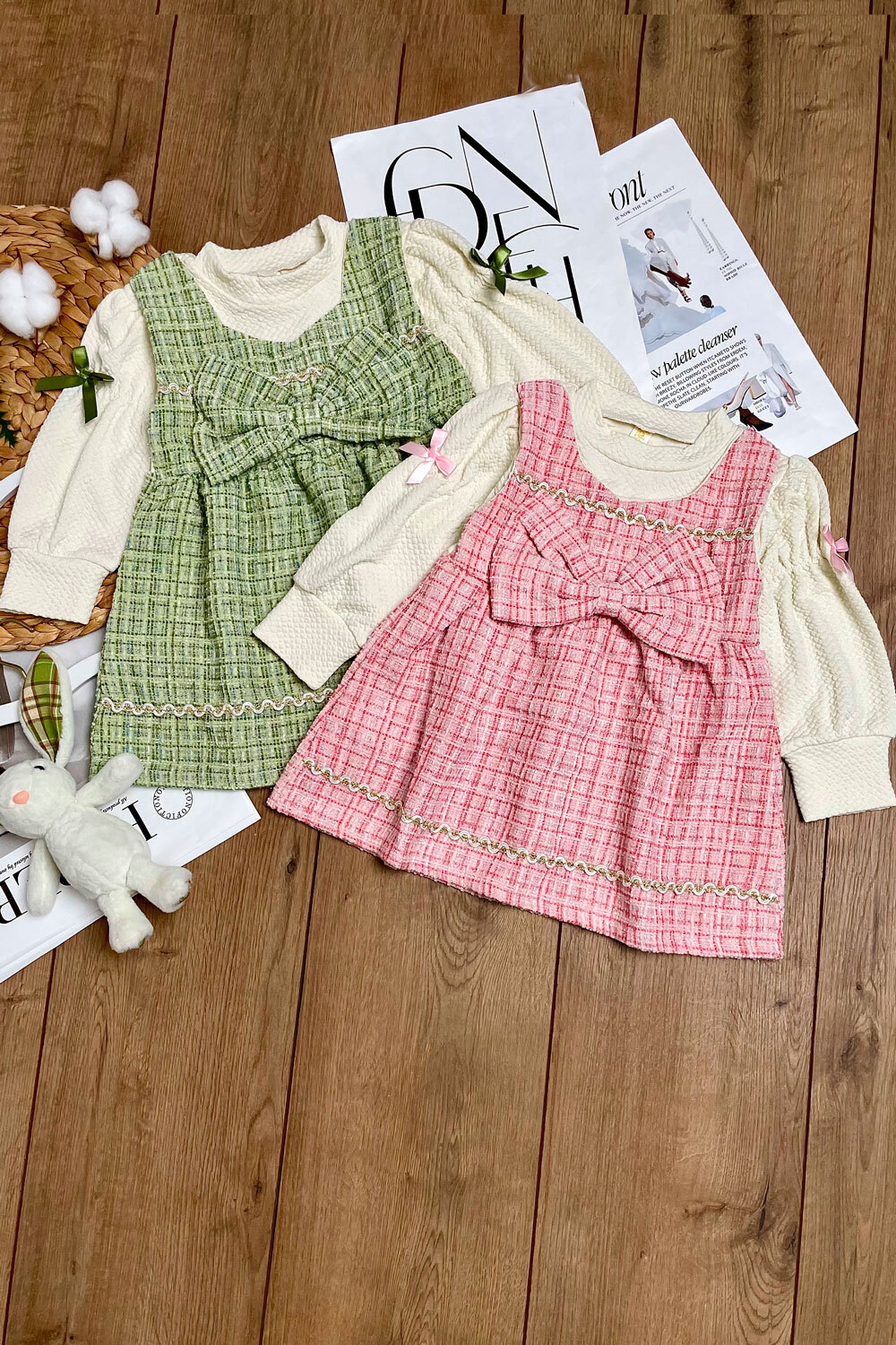 Платье 90,100,110,120(2-4года) обманка/ткань твид/бантик апликация