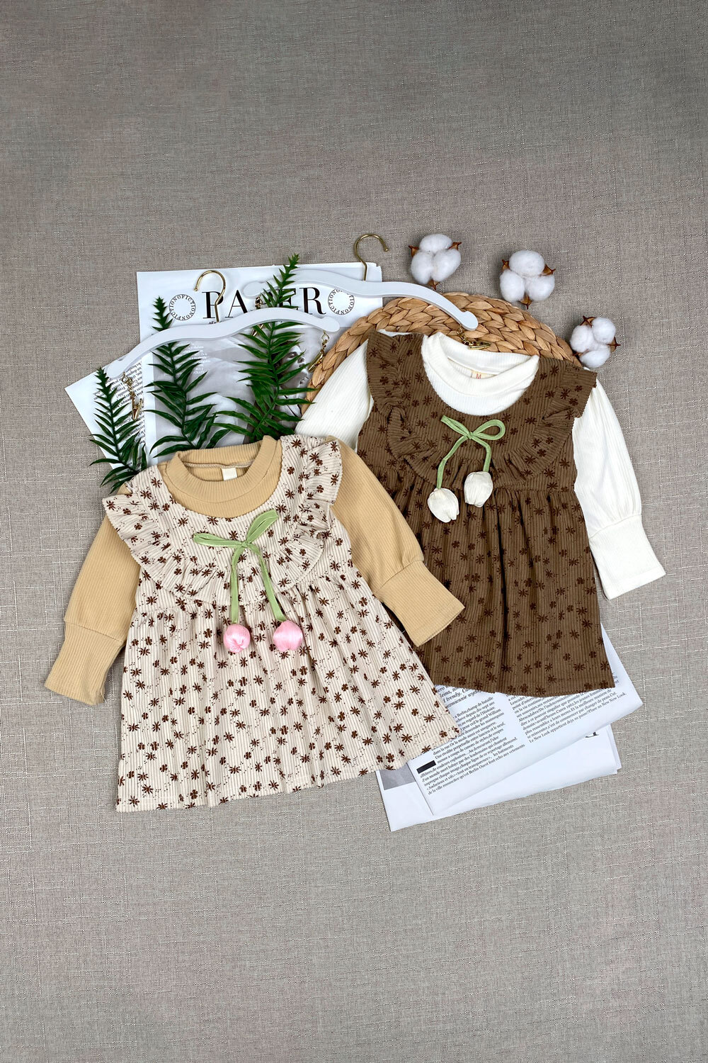 Платье 80,90,100,110(1-4года) /ВЕЛЬВЕТ/воротник/аппликация-бантик из цветов/манжеты/низ в цветочках