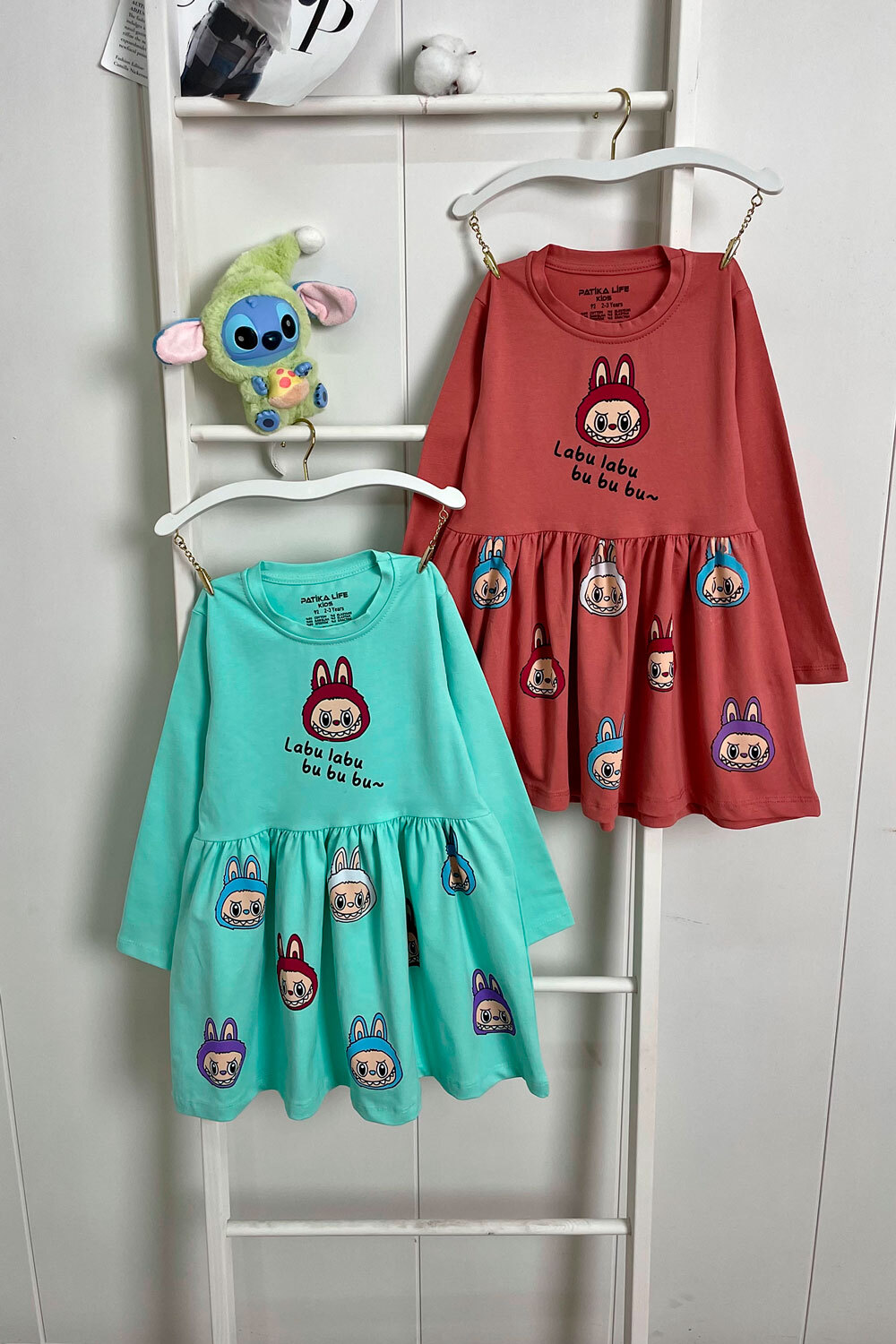Платье 92,104,110,116,122 однотонное/надпись "Labubu"/принт с лабубу