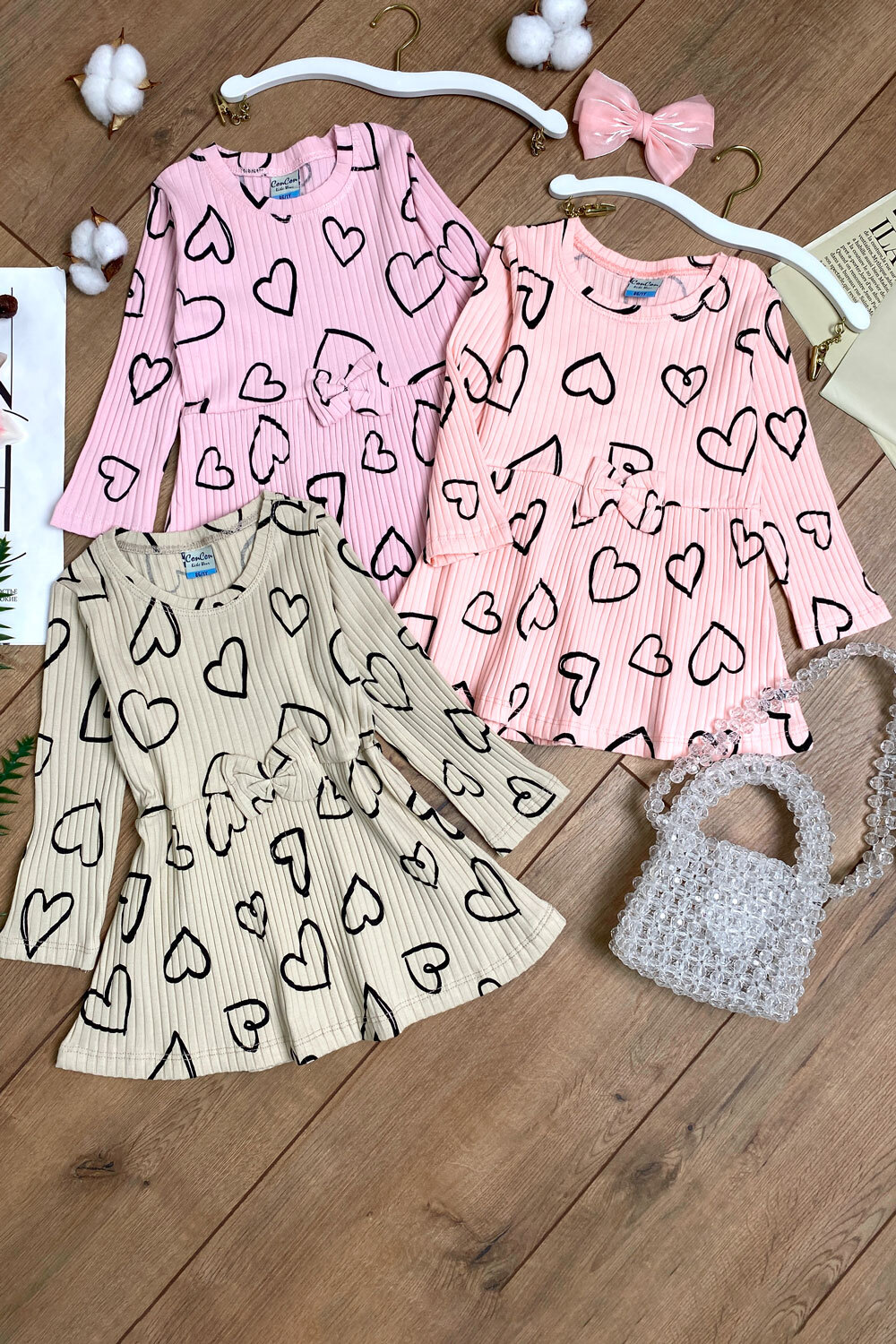Платье 86,92,98,104 /ЛАПША/узор сердечки/однотон/бантик