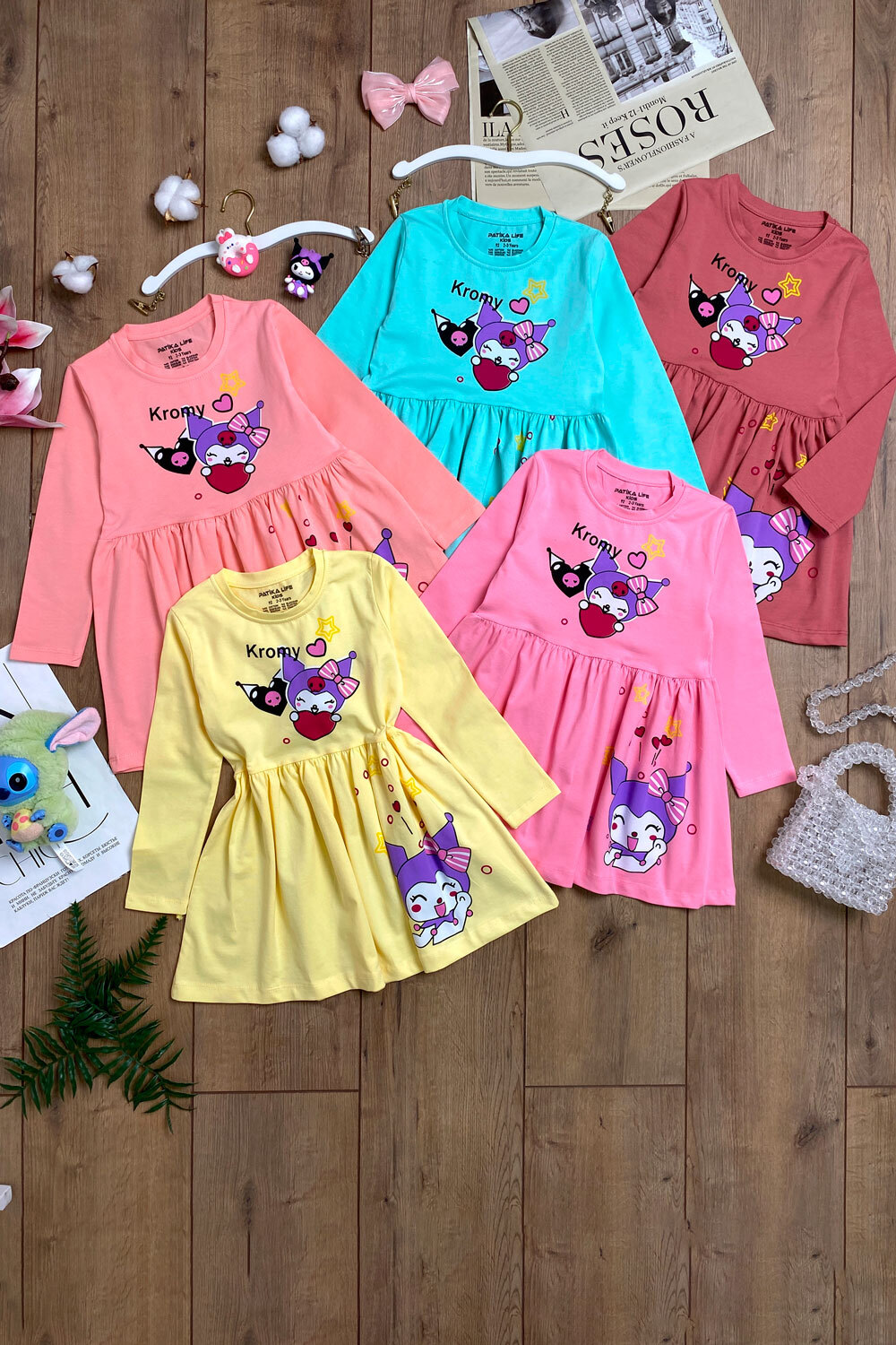 Платье 92,104,110,116,122 /однотонное/надпись "Kromy"/принт игрушка с сердечками