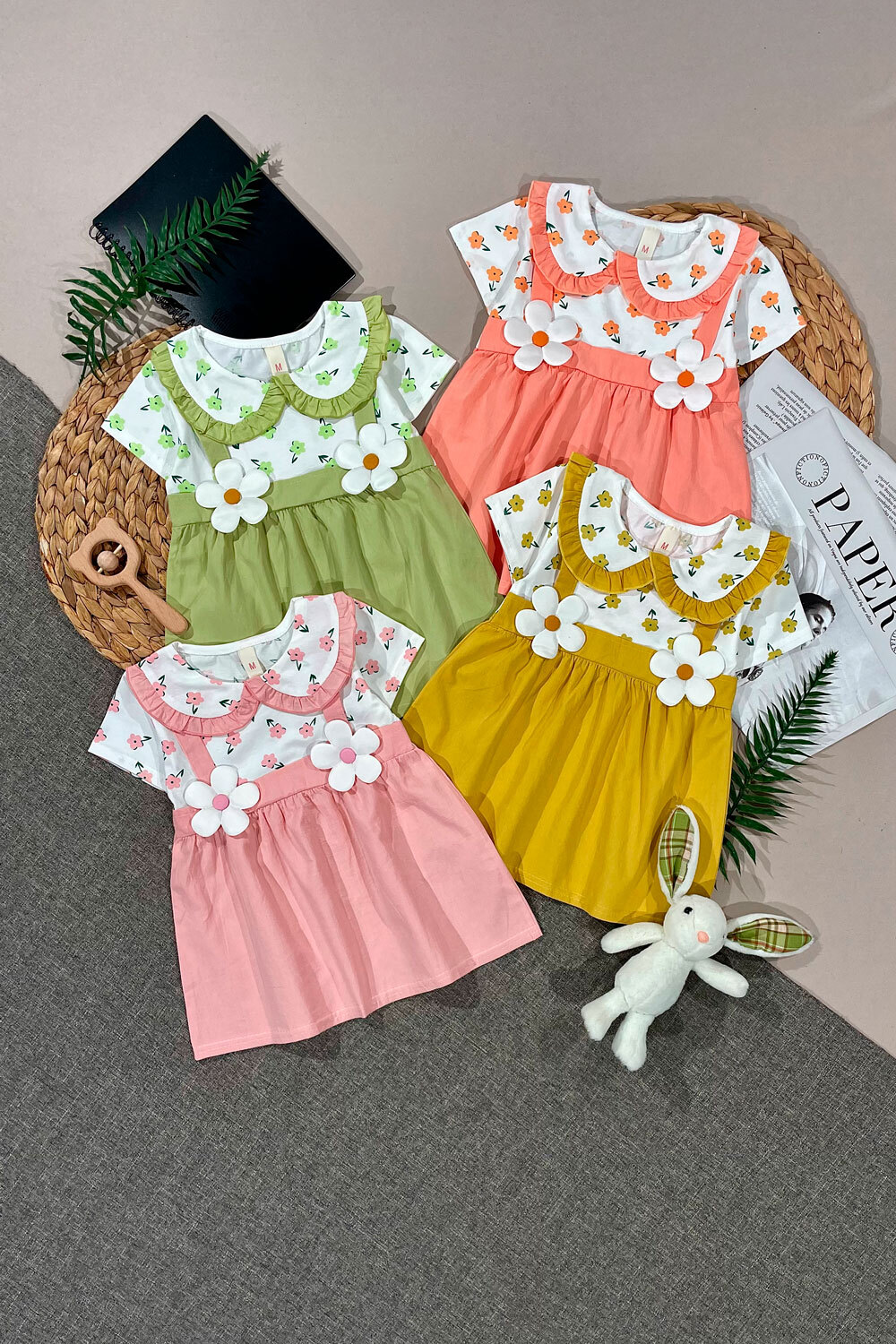 Платье 75,80,90,100(9мес-2года) цветы-апликация/отложной воротник/цветы узор