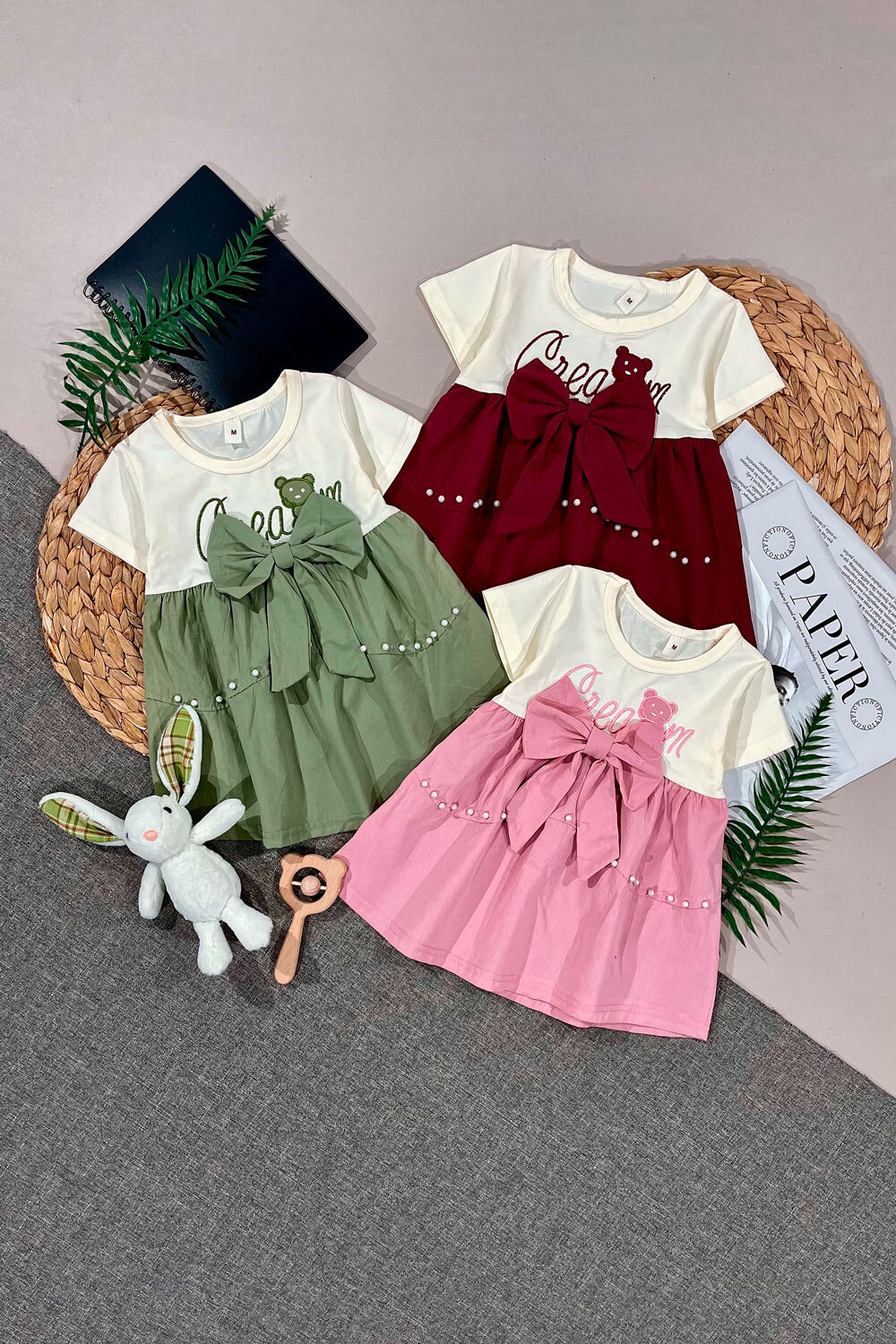 Платье 75,80,90,100(9мес-2года) вышивка медведь/бант апликация/бусинки/"Cream"