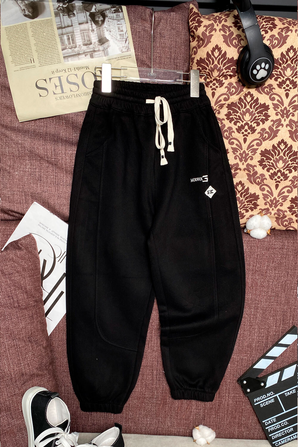 Брюки спортивные М 110,120,130,140,150(8-12лет) однотон/нашивка/резинка по низу штанин