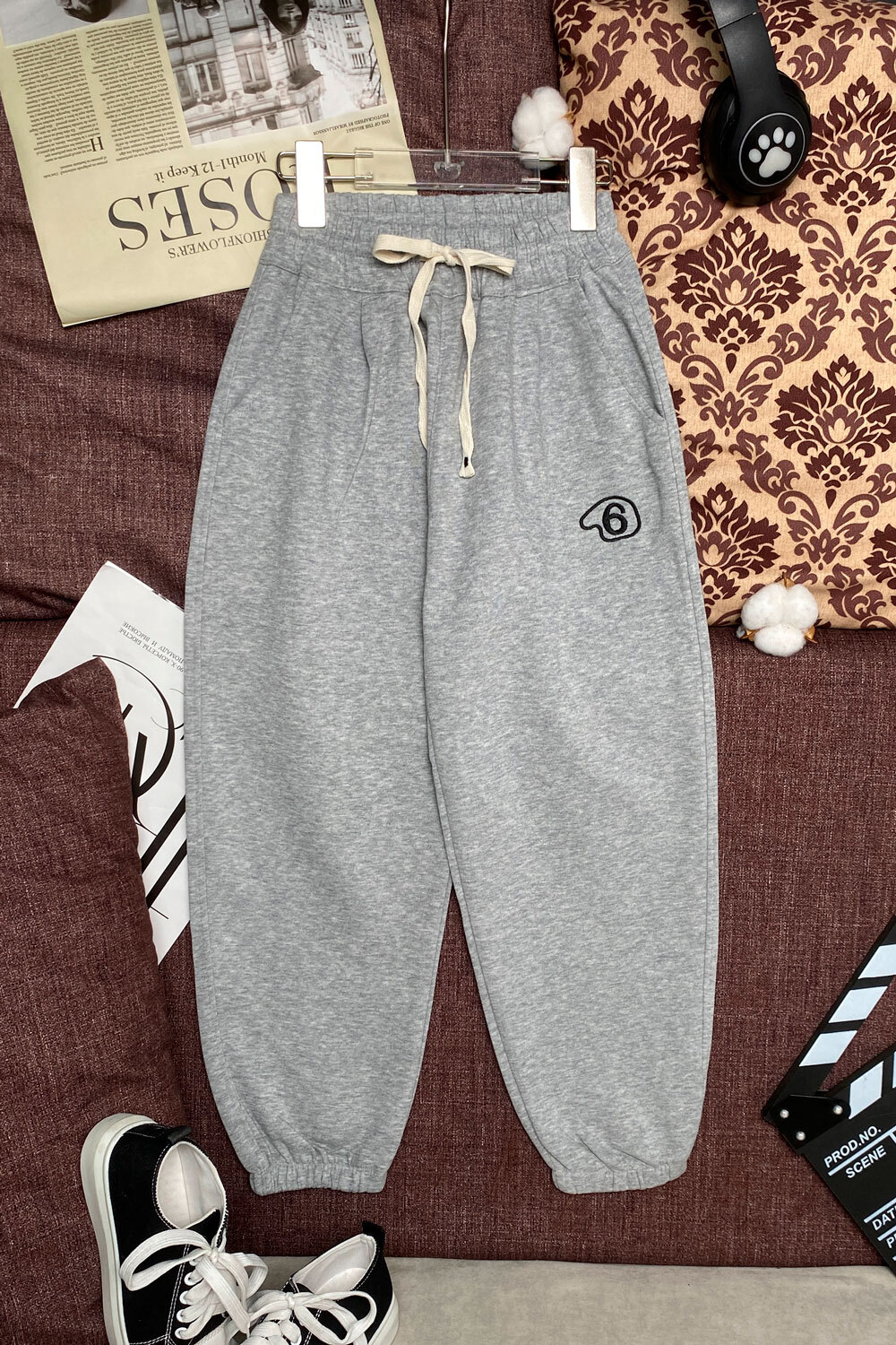Брюки спортивные М 110,120,130,140,150(8-12лет) нашивка "6"/резинка по низу штанин/шнурок-завязка