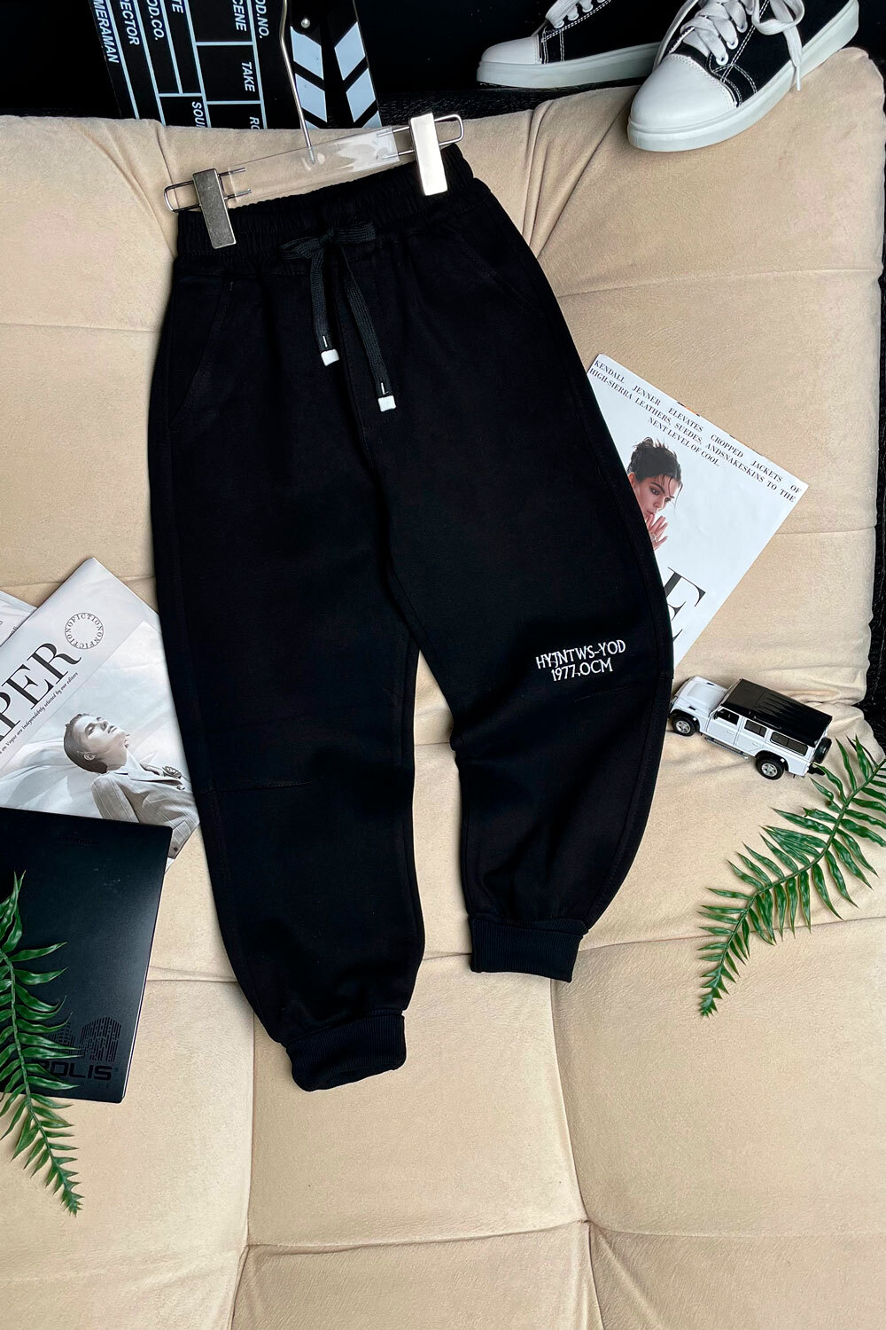 Брюки спортивные М 110,120,130,140,150(8-12лет)надпись "HYJNTWS-YOD 1977OCM"/манжеты по низу штанин