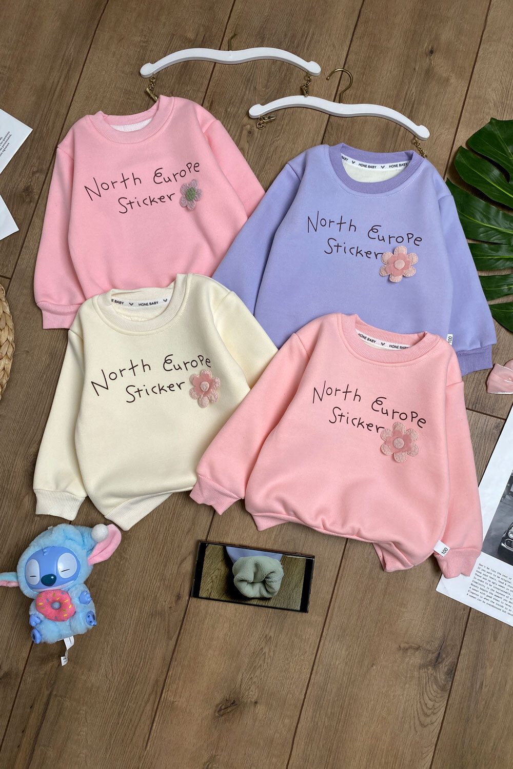 Свитшот Д 90,100,110,120,130(1-5лет) ЕВРОМЕХ/надпись "North Europe Sticker"/нашивка "цветок"