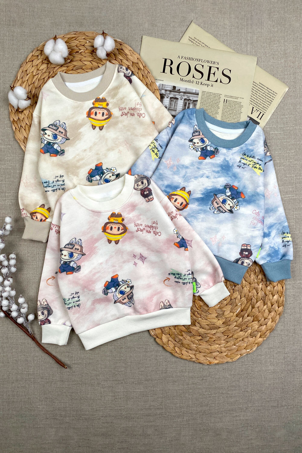 Свитшот Д 90,100,110,120,130(2-6лет) принт лабубу/надписи Cats are just children with Fur!