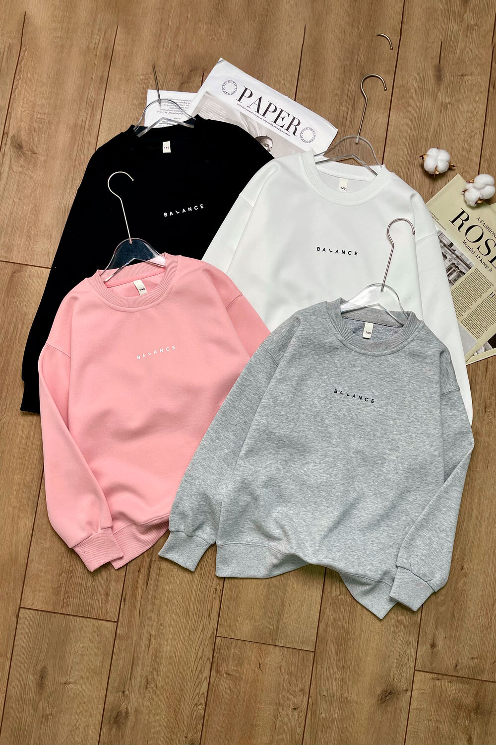 Свитшот Д 140,150,160,170,180(10-14лет) однотон/манжеты/надпись "BALANCE"