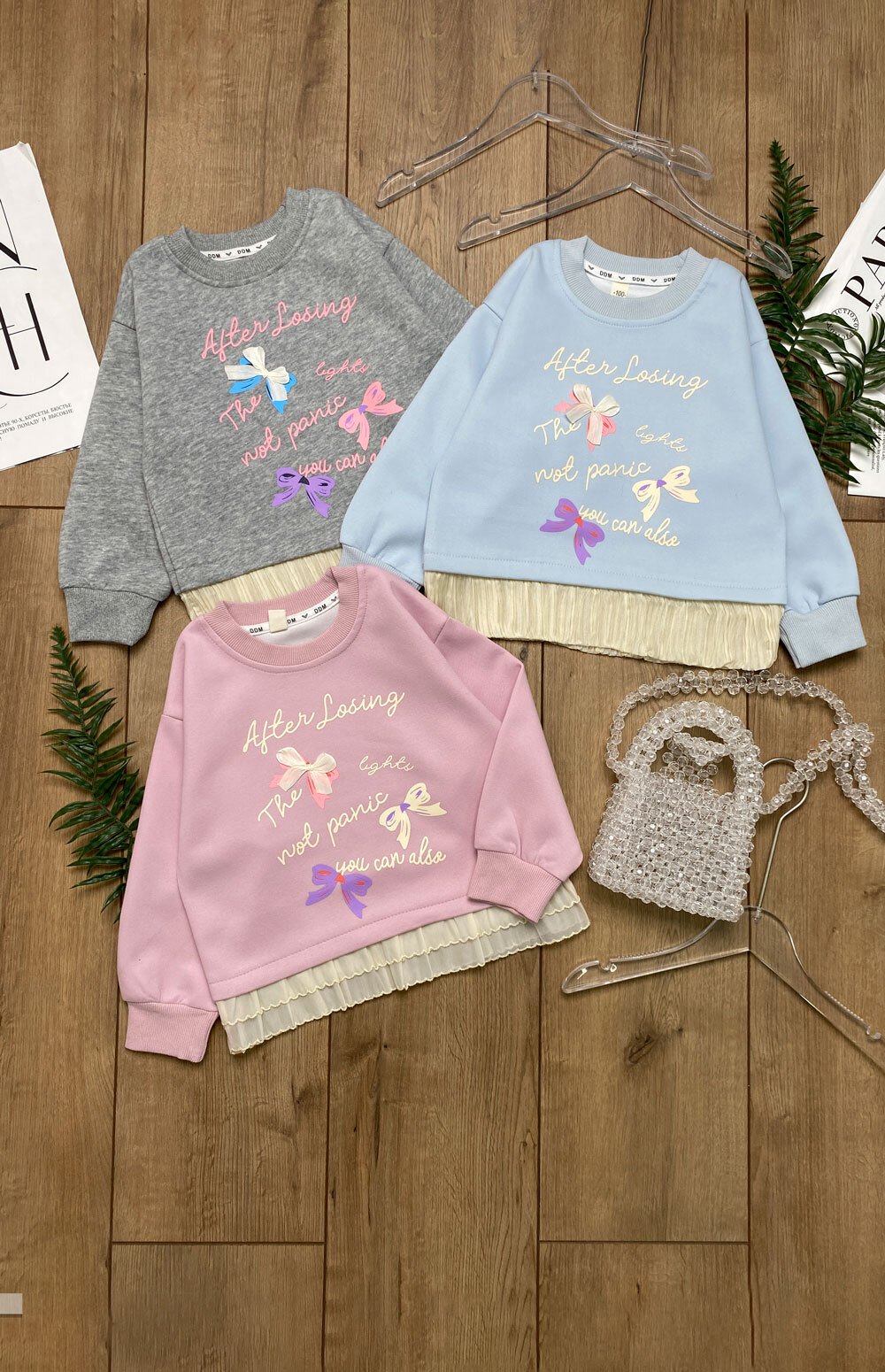 Свитшот Д 100,110,120,130,140(3-6лет) нашивка "бантики"/надпись "After losing..."?/однотон/манжеты