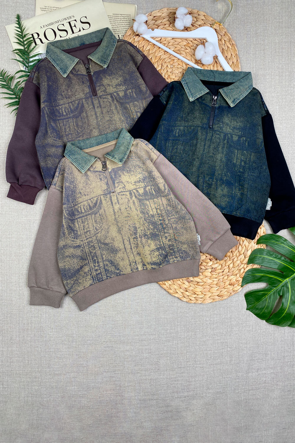 Свитшот М 120,130,140,150,160(6-10лет) /принт "безрукавка"/молния/воротник