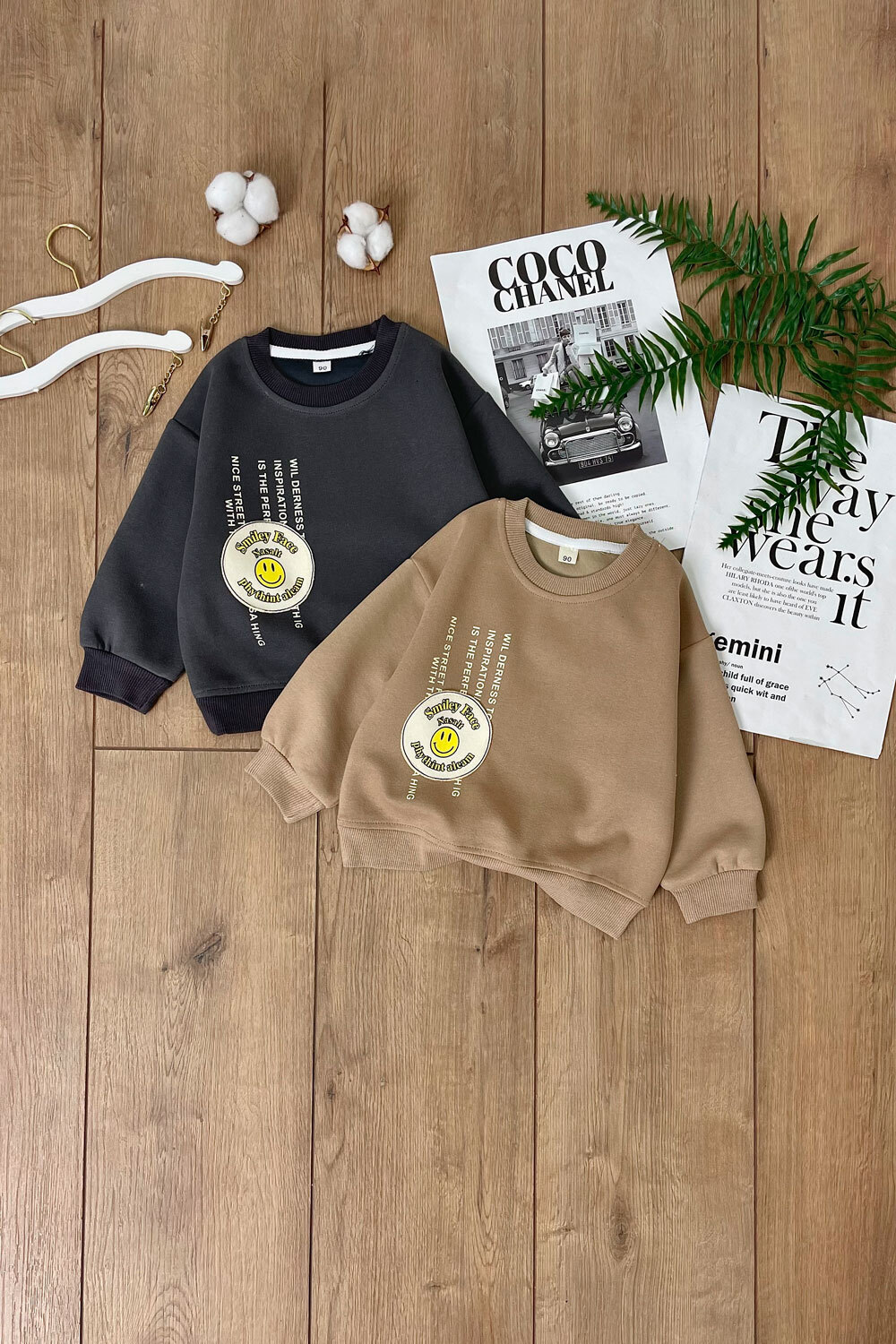 Свитшот М 90,100,110,120,130(1-5лет) нашивка "смайлик"/надпись "Smiley Face"/манжеты